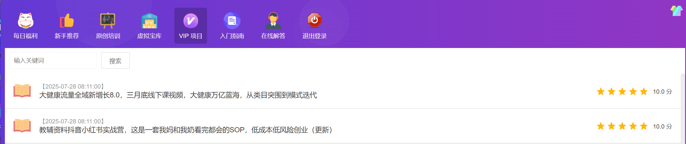 今日项目: ①大健康流量全域新增长8.0,三月底线下课视频,大健康万亿蓝海,从类目突围到模式迭代 食国 ②无风险创业(更新)教辅资料抖音小红书实战营,这是一套我妈和我奶看完都会的SOP,低成本创业(更新)